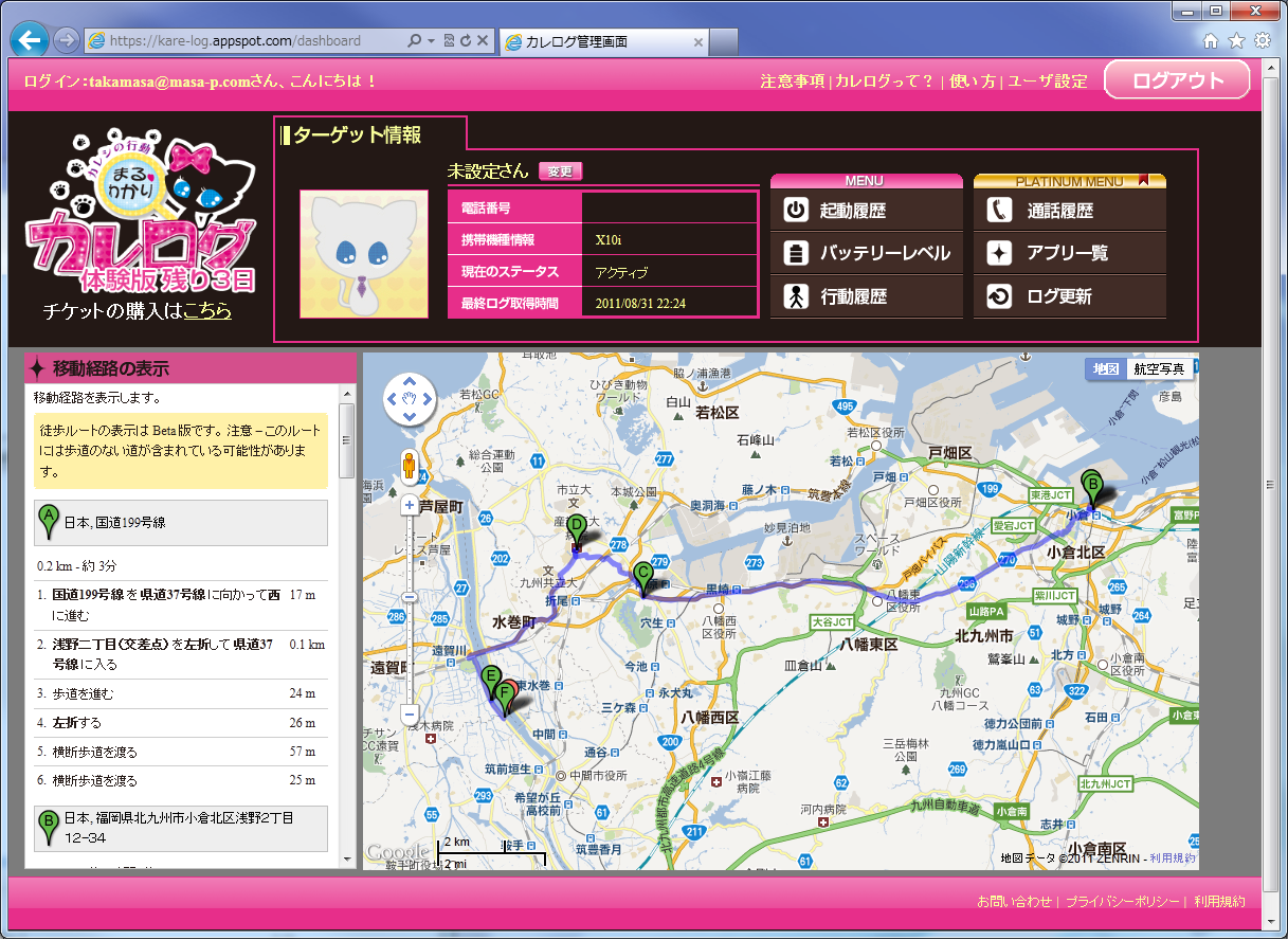 1枚目は。。。とりま起動画面プラス経路表示した部分です。