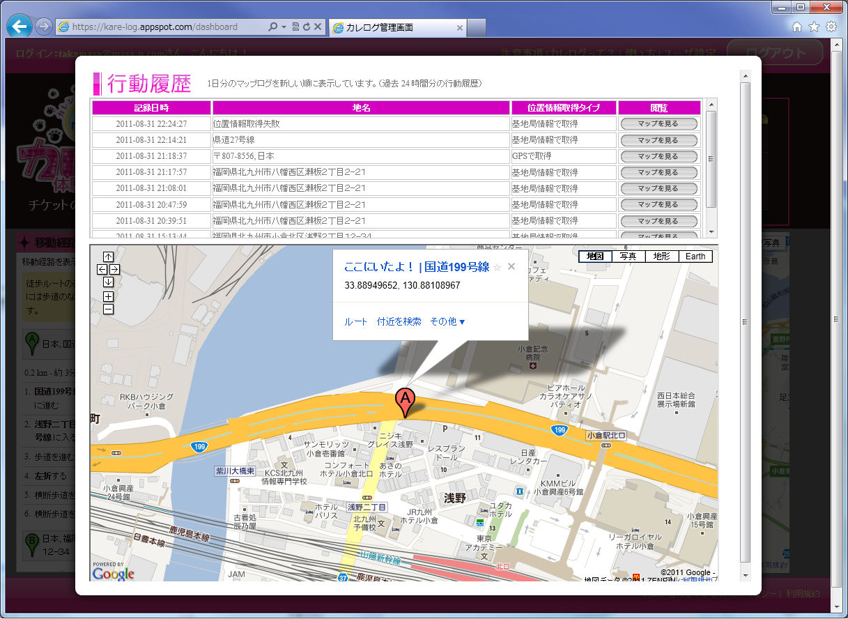 取得した位置情報を鯖に溜め込んで表示することが出来るようです!!
